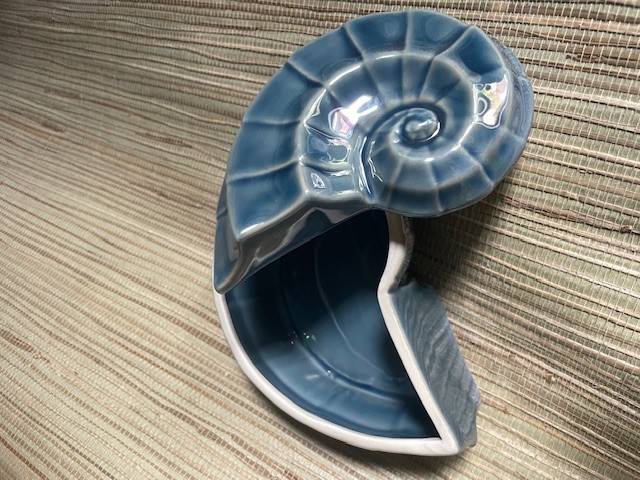 Seashell Display Box, Coastal blue ceramic Seashell Storage, Great for jewelry or Miscellaneous.